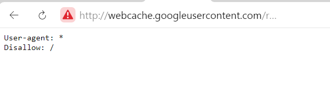 At the same time, the  webcache.googleusercontent.com policy  for robots is as shown in the second attachment.