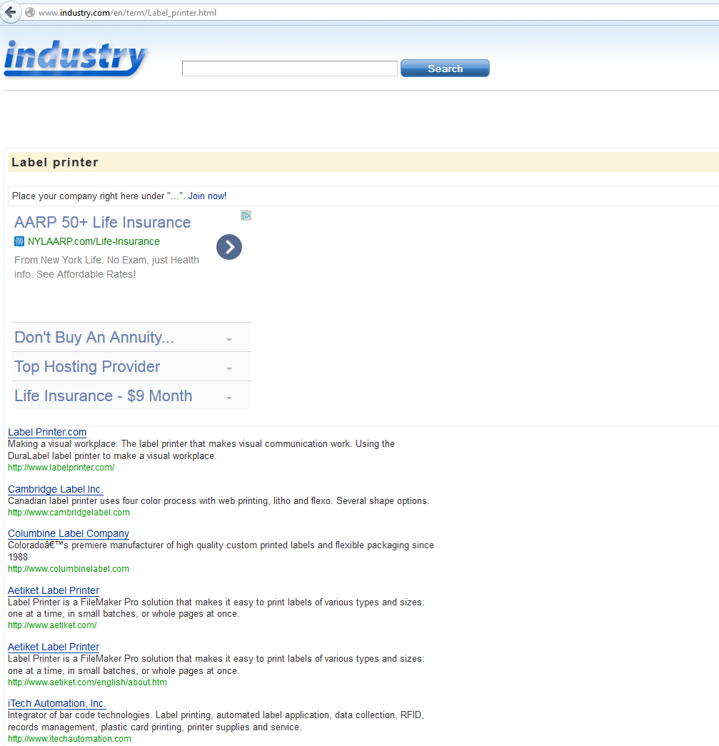 Industry.com looks to me like a directory site where you are encouraged to pay for advertising.